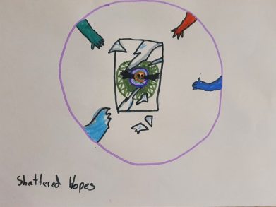 After each picture is completed, the therapist and client spend a few minutes of tapping on acupressure points on the head neck and under the arm, while briefly describing the picture; the tapping and the words are gently but effectively working on the roots of the difficulty, and diminishing the problem. These techniques are highly effective with children, young people and adults.