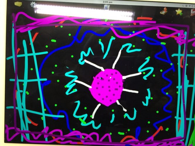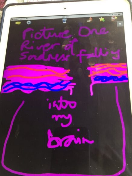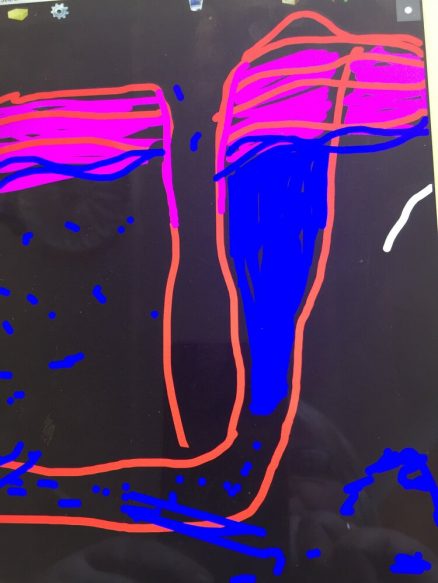 This is an example of fade the feeling technique. Three drawings are drawn on the iPad in one session, with parts of the picture rubbed out as part of the work.
